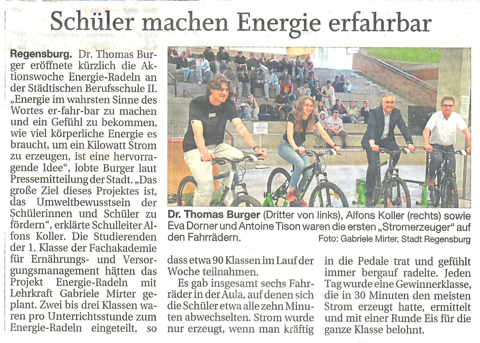 Auch wenn es die Technik von Energie wird Natur ist – euer Event läuft natürlich unter eurem Titel – genau wie es die Berufsschule II Regensburg mit dem „Energieradeln“ in der eigenen Aula veranstaltet hat. Mit großer Begeisterung bei allen Beteiligten, wie uns Schulrektor Alfons Koller berichtete. Hier der Artikel der Mittelbayerischen Zeitung dazu.